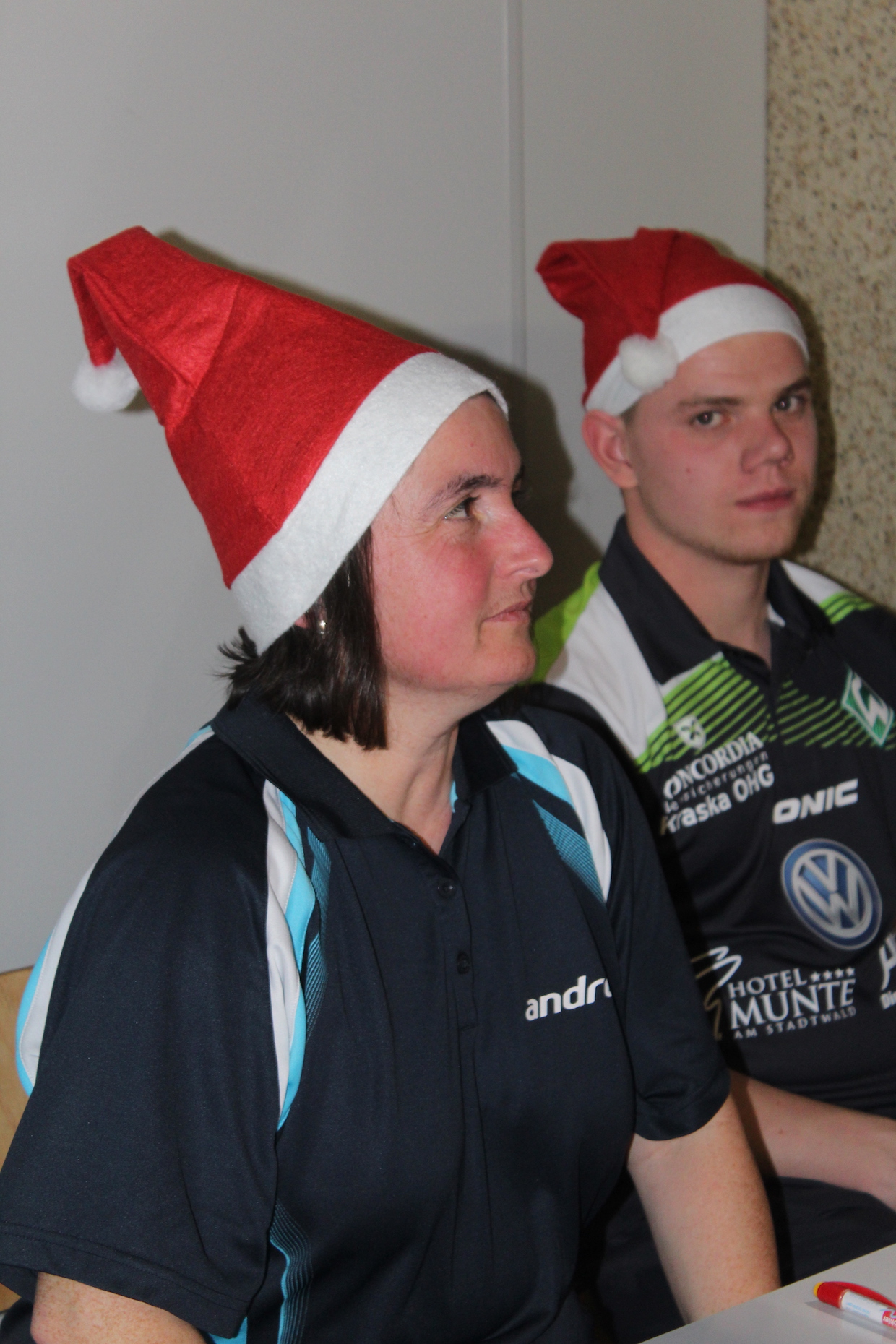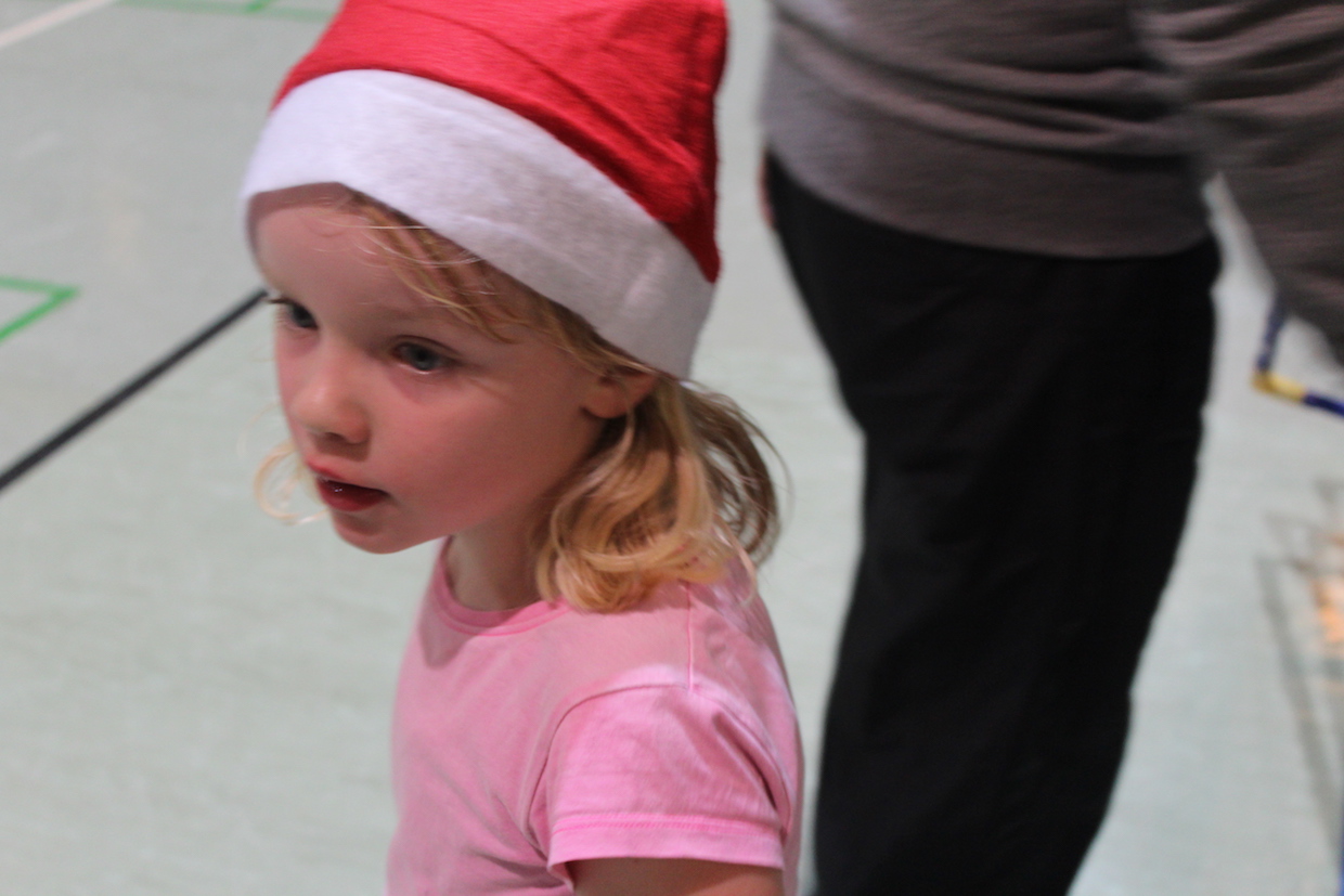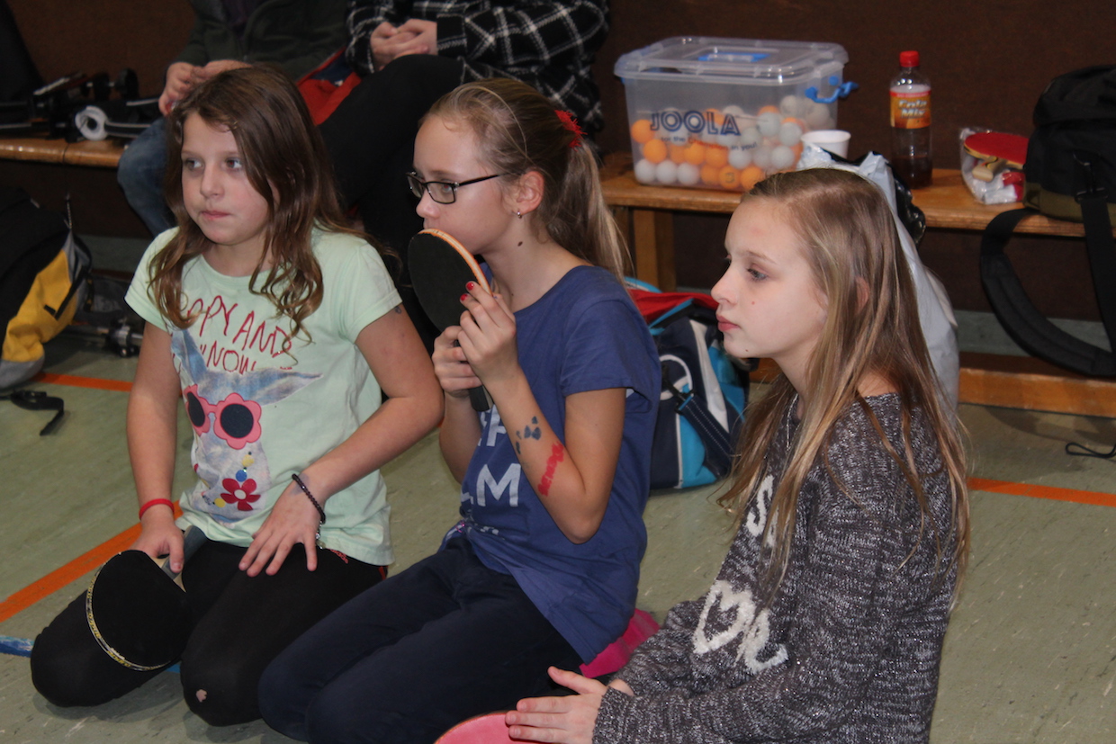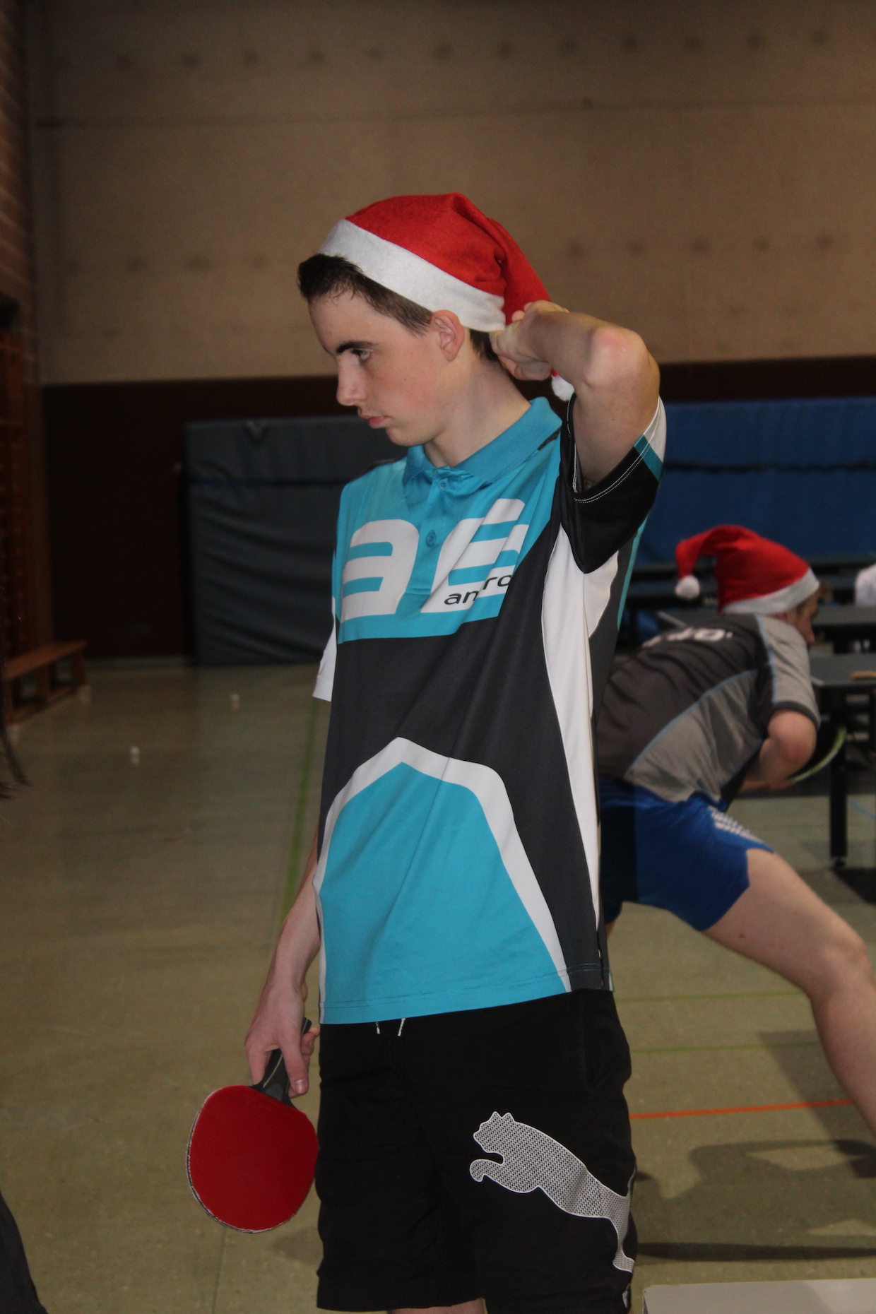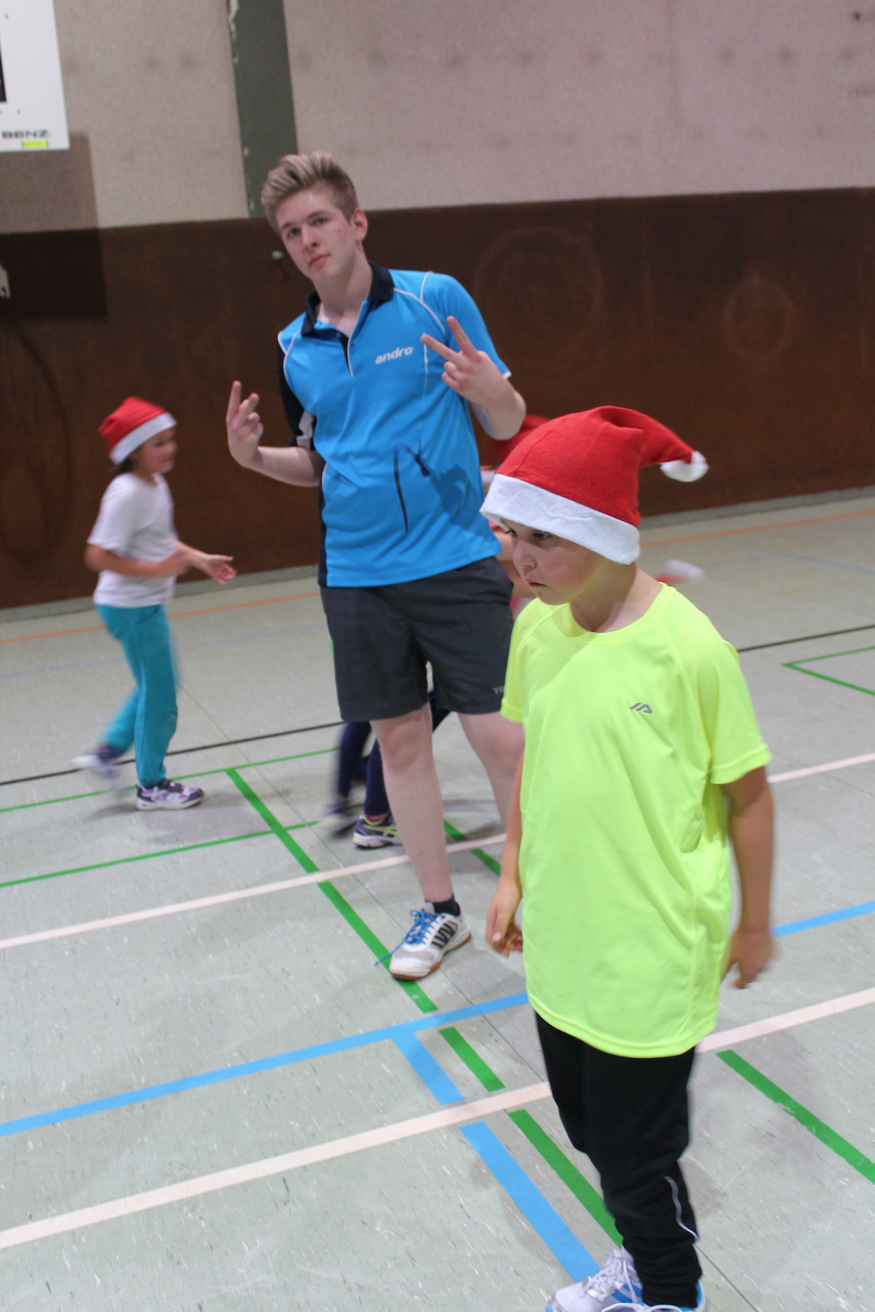 Die Feier der Mini- bzw. Anfängergruppe fand am Mittwoch, den 16.12. innerhalb des Tischtennis-trainings statt. Zuerst erhielten alle Anwesenden eine Nikolausmütze und spielten gemeinsam „Wer hat Angst vor’m schwarzen Mann“ und „Jägerball“ . Sehr schön war, dass alle Helfer – also Jens, Anna, Joshua, Anika, Alischa und Tatjana mit den TT-Kücken mitspielten und so war die Stimmung richtig super.